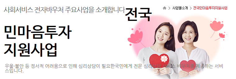 1. 전국민 마음투자 지원사업 본격 실시: 전문 심리상담 이용권 제공