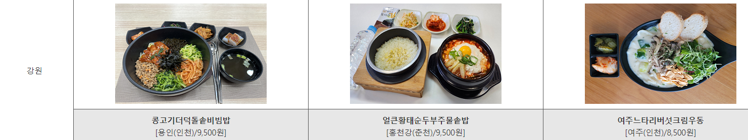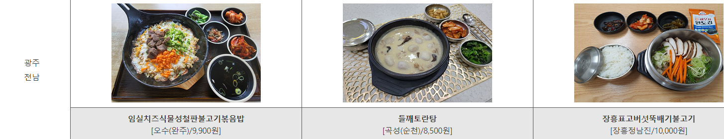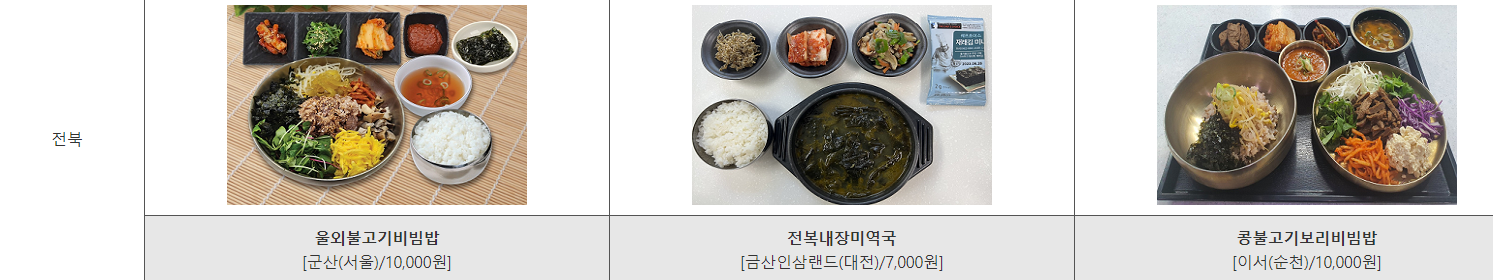 - 지역 특산물: 각 지역의 특색을 살린 다양한 메뉴를 제공, 그 지역만의 특별한 맛을 느낄 수 있습니다.