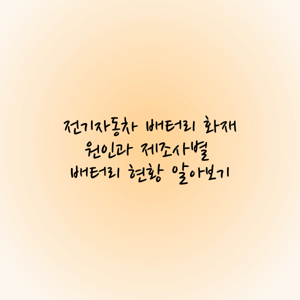 이 글에서는 전기자동차 배터리 화재의 주요 원인과 함께, 주요 제조사별 배터리 현황을 상세히 알아보겠습니다. 배터리 기술의 발전과 안전 문제를 종합적으로 이해함으로써, 전기차 소유자와 예비 구매자들이 보다 신뢰할 수 있는 차량을 선택할 수 있도록 돕겠습니다. 전기차의 안전성을 강화하고, 화재 사고를 예방하기 위해 필요한 정보를 함께 살펴보겠습니다.