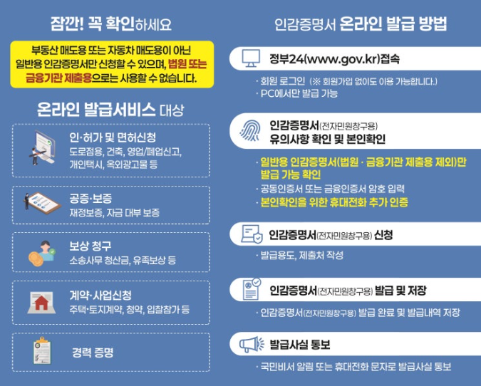 - 과거에는 주민센터에 방문해 직접 발급받아야 했지만, 디지털 시대의 발달로 이제는 온라인을 통해 편리하게 발급받을 수 있습니다. 정부24 사이트에서 시간과 장소에 구애받지 않고 인감증명서를 신청하고 발급받을 수 있게 되었습니다.