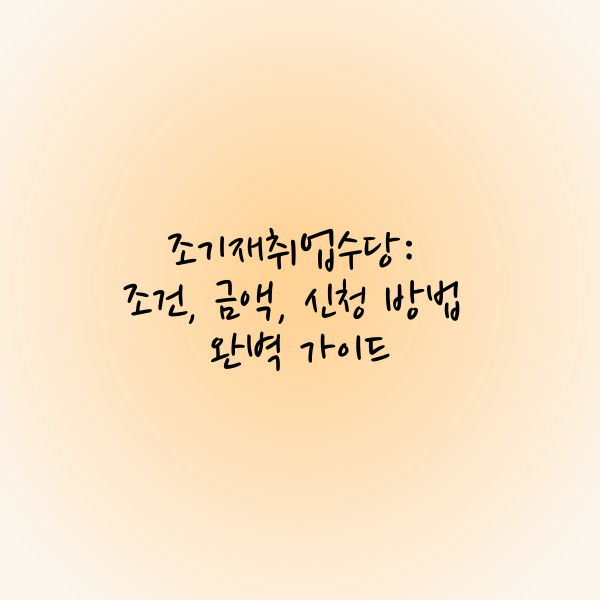 이 가이드를 통해 조기재취업수당의 모든 정보를 이해하고, 효과적으로 활용해 안정적인 재취업과 경제적 안정을 이루시길 바랍니다.