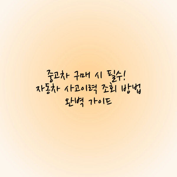 - 자동차 사고이력 조회는 중고차 구매를 고려할 때 반드시 확인해야 할 정보입니다.