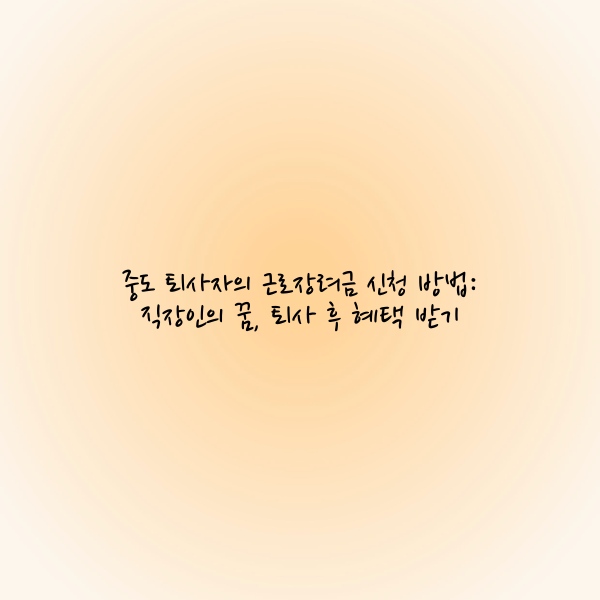 중도 퇴사자이더라도 근로장려금을 신청하여 경제적인 지원을 받을 수 있습니다. 필요한 서류를 준비하고 정확한 신청 기간을 확인하여 놓치지 않도록 주의하세요. 퇴사 후에도 새로운 시작을 할 수 있도록 근로장려금을 통해 안정된 경제적 기반을 마련하세요.