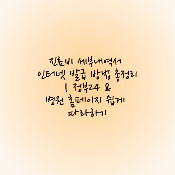의료비 지출이 많아지는 요즘, 진료비 세부내역서는 보험금 청구나 세금 공제 등의 다양한 상황에서 꼭 필요한 서류입니다. 하지만 바쁜 일상 속에서 병원을 직접 방문해 발급받는 건 꽤나 번거로운 일이죠. 다행히도 최근에는 정부24 웹사이트나 병원 홈페이지를 통해 진료비 세부내역서를 온라인으로 간편하게 발급받을 수 있는 방법이 마련되어 있어, 집이나 사무실에서도 손쉽게 서류를 준비할 수 있습니다.