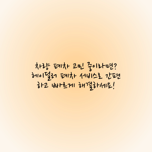 차량이 노후되어 더 이상 유지하기 어려운 상황이라면 폐차는 합리적인 선택이 될 수 있습니다. 특히 요즘은 폐차 과정이 간소화되어, 빠르고 편리하게 폐차를 진행할 수 있는 플랫폼이 많이 있는데요, 그중에서도 헤이딜러는 폐차 견적부터 차량 인수까지 한 번에 해결할 수 있어 바쁜 현대인들에게 큰 호응을 얻고 있습니다.