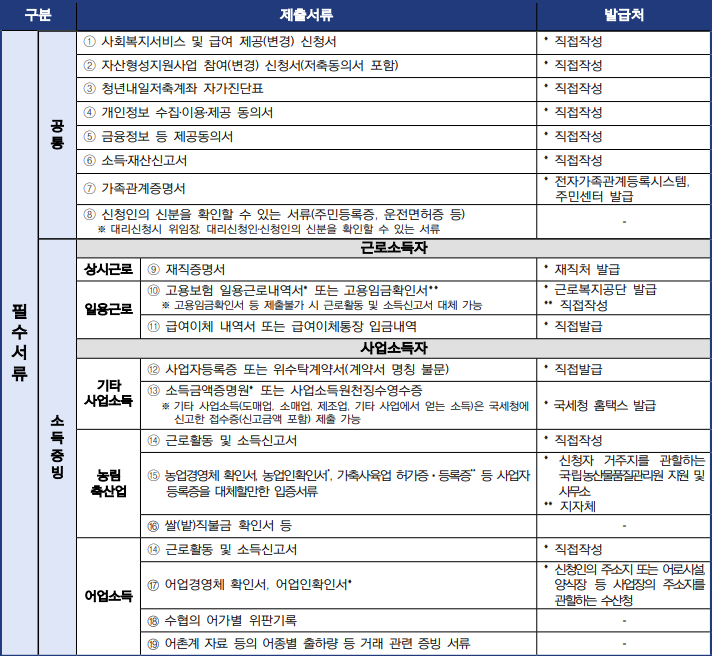 청년내일저축계좌 신청 시 제출서류