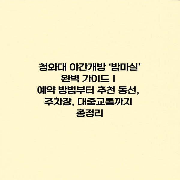 이번 글에서는 청와대 밤마실 운영시간, 사전 예약 방법, 추천 관람 동선, 인근 주차장, 대중교통 이용 팁까지 처음 방문하시는 분들도 쉽게 이해할 수 있도록 정리해드리겠습니다.