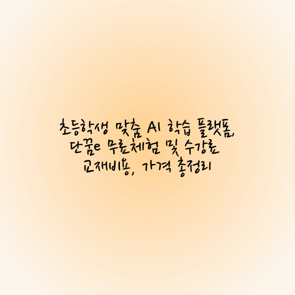 학생의 학습 스타일에 맞춘 플랫폼을 찾고 계신다면, 단꿈e를 한 번 경험해보는 것도 좋은 선택이 될 것입니다. 무료체험과 할인 혜택 정보를 확인해보시고, 자녀의 학업 성취도를 높일 수 있는 기회를 잡아보세요!
