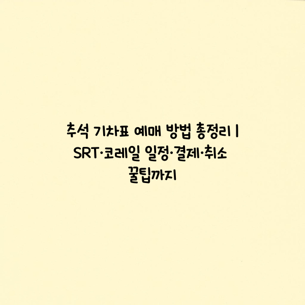 추석 기차표 예매 방법 총정리 | SRT·코레일 일정·결제·취소 꿀팁까지