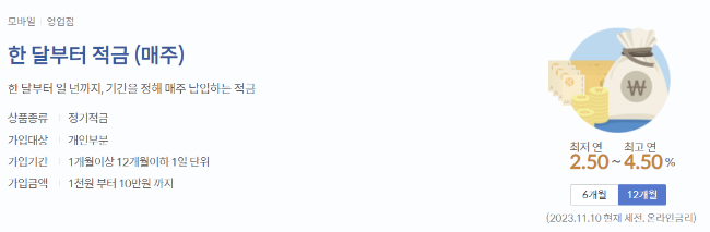- 가입 기간: 1개월~12개월(일 단위로 설정 가능)