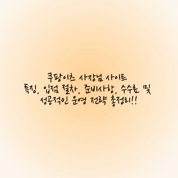 이 글을 통해 쿠팡이츠에 대한 이해를 높이고, 입점부터 성공적인 운영까지의 과정을 준비하시기 바랍니다.