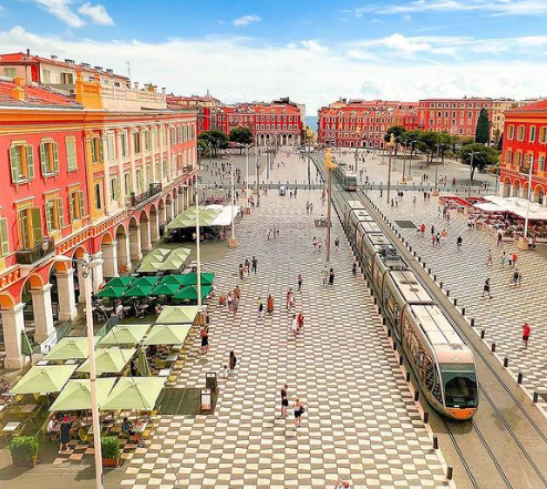 마세나 광장은 붉은 벽의 건물들과 흰색 검은색 체크무늬 바닥의 조화가 돋보이는 곳입니다. 니스의 구도심과 맞닿은 이 곳은 영국인들의 산책로의 입구로서 니스의 중심 역할을 합니다. 광장을 중심으로는 다양한 레스토랑과 쇼핑 거리가 있어 니스 여행 중 빠질 수 없는 핫플레이스입니다.