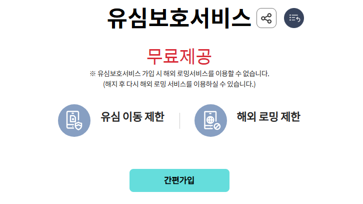 - 목록에서 ‘유심보호서비스’ 선택 (무료 제공)