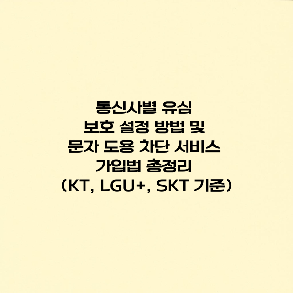 이 글에서는 KT, LGU+, SKT 등 주요 이동통신사별 유심 보호 서비스 설정 방법과 함께, 모든 통신사에서 무료로 제공하는 문자 도용 차단 서비스 가입 방법까지 한눈에 보기 쉽게 정리해드립니다.