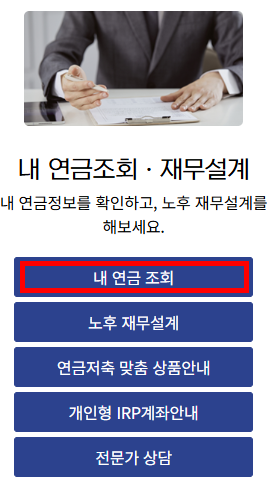 가입 후 3영업일이 지나면, 로그인 후 상단의 ‘내 연금조회’ 메뉴를 통해 내가 가입한 연금 종류와 예상 수령액을 확인할 수 있습니다.