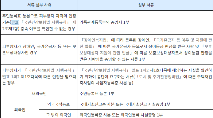 만약 장애인, 보훈대상자, 외국인의 경우는 신청서와 함께 첨부해야 할 서류가 있으니 위의 표를 참고하시기 바랍니다.