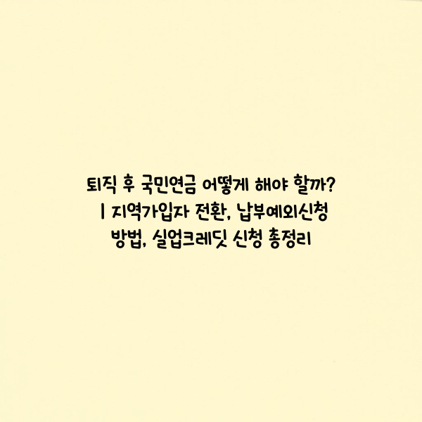 특히 60세 이전 퇴직자는 지역가입자 전환 여부와 신고 기한, 납부예외 신청 타이밍을 놓치지 않는 것이 핵심입니다. 또한 실업급여 수급자는 실업크레딧 신청 자격이 되는지 반드시 확인해보세요.