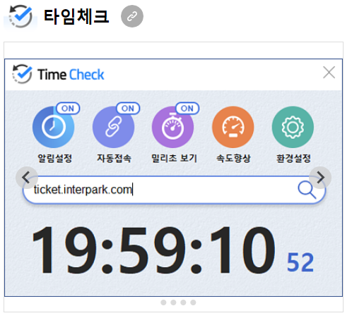 - 타임 체크 프로그램은 수강신청이나 티켓팅 서버 시간을 정확하게 확인할 수 있는 도구로, 티켓팅 사이트의 접속 주소를 입력하면 해당 서버의 시간을 알 수 있습니다.