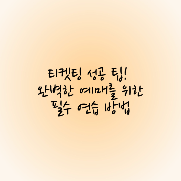 인기 있는 공연이나 스포츠 이벤트의 티켓팅은 많은 이들에게 도전 과제입니다. 원하는 좌석을 확보하기 위해서는 단순히 운에 맡기는 것보다 철저한 연습이 필수입니다. 특히, 예매 사이트의 특성을 파악하고 빠른 클릭 속도를 익히는 것은 티켓팅 성공의 열쇠입니다. 이 글에서는 티켓팅을 처음 시도하는 초보자부터 실패를 경험한 이들까지, 누구나 쉽게 따라 할 수 있는 티켓팅 연습 방법을 소개합니다. 철저한 준비와 연습으로 원하는 티켓을 놓치지 않고 성공하는 방법을 알아보세요!