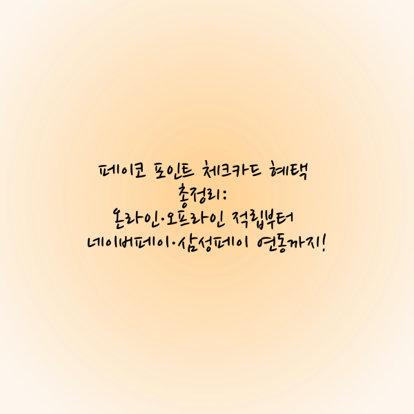 페이코 포인트 체크카드는 온라인 1% 적립, 오프라인 0.5% 적립이라는 기본 혜택을 제공하며, 네이버페이 및 삼성페이와의 연동을 통해 추가 혜택을 극대화할 수 있는 체크카드입니다.
