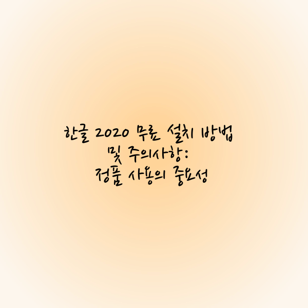 한글 2020은 한국에서 가장 널리 사용되는 워드 프로세서로, 문서 작성과 편집, 표 작업 등 다양한 기능을 제공합니다. 하지만 많은 사용자가 무료로 설치하는 방법을 찾고 있어요. 이 글에서는 한글 2020을 무료로 체험할 수 있는 방법과 함께 주의해야 할 사항을 안내합니다. 정품 소프트웨어 사용의 중요성도 함께 알아보세요.