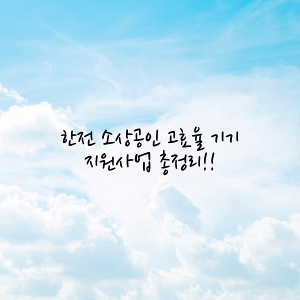 - 한전에서는 소상공인들을 위한 고효율 기기 지원 사업을 진행하고 있습니다. 이를 희망하는 사업자들은 다음과 같은 방법으로 신청할 수 있습니다.