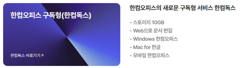 - 설치가 번거롭다면, 구독형 ‘한컴독스’를 활용하세요.