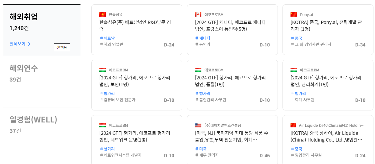 한국산업인력공단에서 운영하는 월드잡플러스는 다양한 해외 취업 정보를 제공하는 플랫폼입니다. 이 사이트에서는 채용 공고, 지원 방법, 기업 정보 등 다양한 자료를 얻을 수 있습니다. 또한, 해외 취업 교육에 필요한 온라인 강좌와 지원금 혜택도 지원하고 있어, 중국, 일본, 미국, 유럽 등 다양한 국가로 진출을 원하는 취준생들에게 큰 도움이 됩니다.