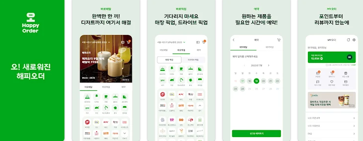 오프라인 매장뿐만 아니라, 온라인 해피오더 앱에서도 사용할 수 있어 접근성과 편리함을 모두 제공합니다.