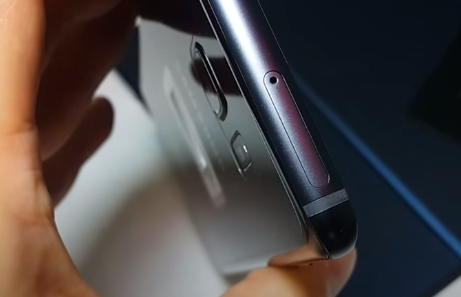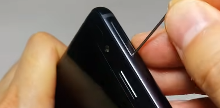 유심핀을 스마트폰 측면에 있는 유심 슬롯 구멍에 조심스럽게 삽입합니다. 살짝 힘을 주어 누르면 유심 슬롯이 튀어나옵니다. 이때 슬롯을 완전히 빼내어 유심 플레이트를 꺼냅니다.