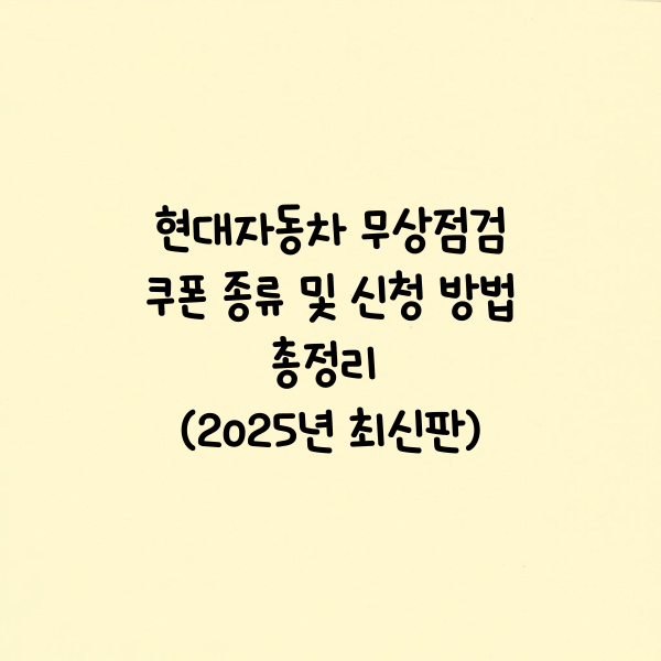 이 글에서는 현대자동차에서 제공하는 무상점검 쿠폰의 종류, 신청 방법, 이용 시 주의사항, 전기차 전용 점검 서비스까지 2025년 최신 정보 기준으로 자세히 안내드립니다.