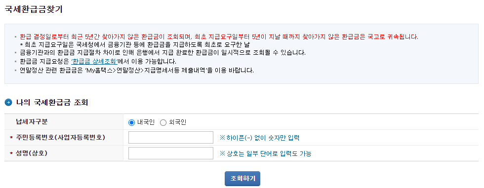 - 환급금 발생일로부터 5년 이내에 신청하지 않으면 해당 금액은 국고로 귀속됩니다.