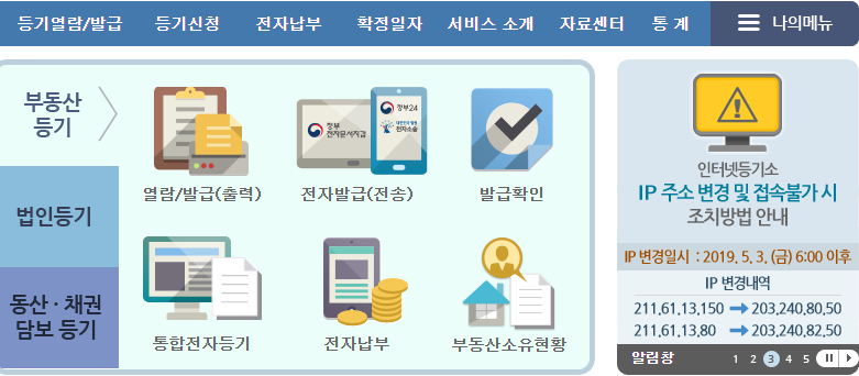 대한민국 법원 인터넷등기소 접속