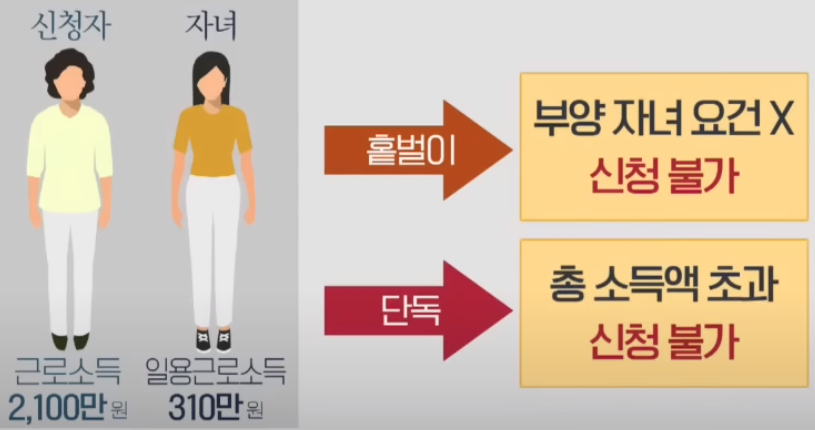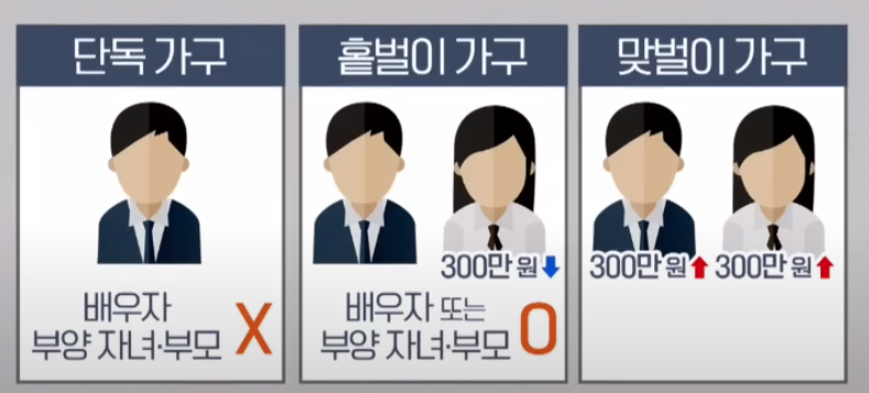 - 배우자가 있는 경우: 배우자의 소득이 연간 300만원 미만일 때 외벌이로 인정