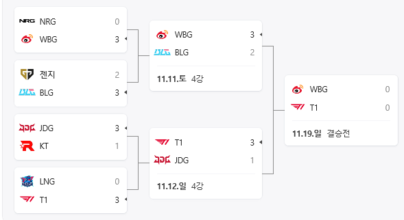 한국 T1과 중국 웨이보 게이밍 역대 전적
