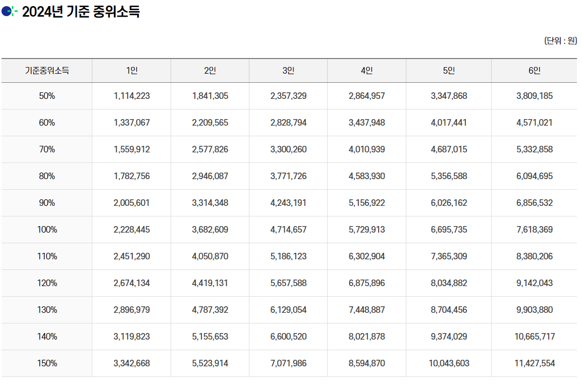 2024년 기준 중위소득표