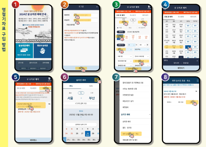 1월 8일부터 9일 오후 3시까지 전화 접수 또는 홈페이지나 모바일 코레일 톡 어플에서 예매가능합니다.