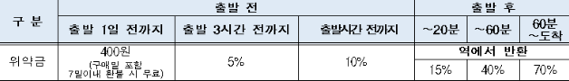 반환 위약금 : 주말(금~일, 공휴일) 기준 위약금 적용