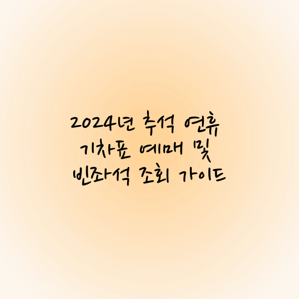 2024년 추석 연휴 기차 여행을 계획하고 있다면, 기차표 예매와 잔여석 확인, 특가 좌석 구매 방법을 잘 알아두는 것이 중요합니다. 아래에서는 잔여석 확인 및 구매 방법, 특가 좌석 구매 팁, 그리고 예매 성공을 위한 꿀팁을 자세히 안내해 드리겠습니다.