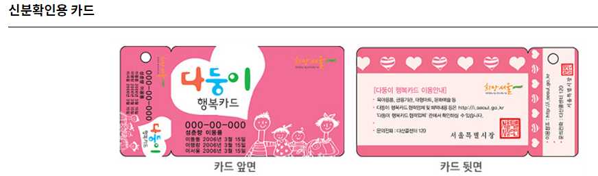 - 카드 앞면(모바일 화면)에 발급자 및 자녀수 기재: 다둥이 행복카드의 앞면 또는 모바일 화면에 발급자와 자녀 수가 기재되어 있어야 합니다.