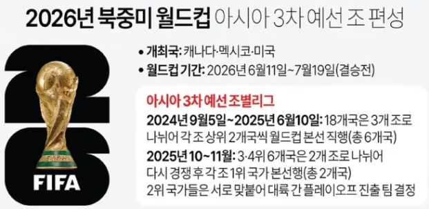 3. 2026 FIFA 북중미 월드컵 3차 예선 경기 일정: 대한민국의 B조 경기 및 중요 일정 안내