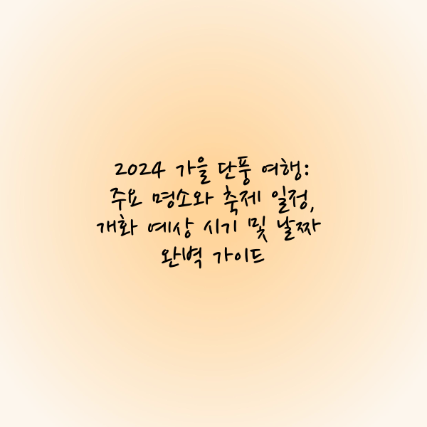 가을이 찾아오면서 많은 이들이 단풍 여행을 계획하기 시작합니다. 특히 한국의 아름다운 자연 속에서 형형색색 물든 단풍은 가을을 더욱 매력적으로 만들어주는데요. 2024년에는 어떤 명소에서 단풍을 즐길 수 있을지, 또 언제쯤 절정에 이를지 궁금해하시는 분들을 위해 전국 주요 단풍 명소와 축제 일정을 정리해보았습니다.