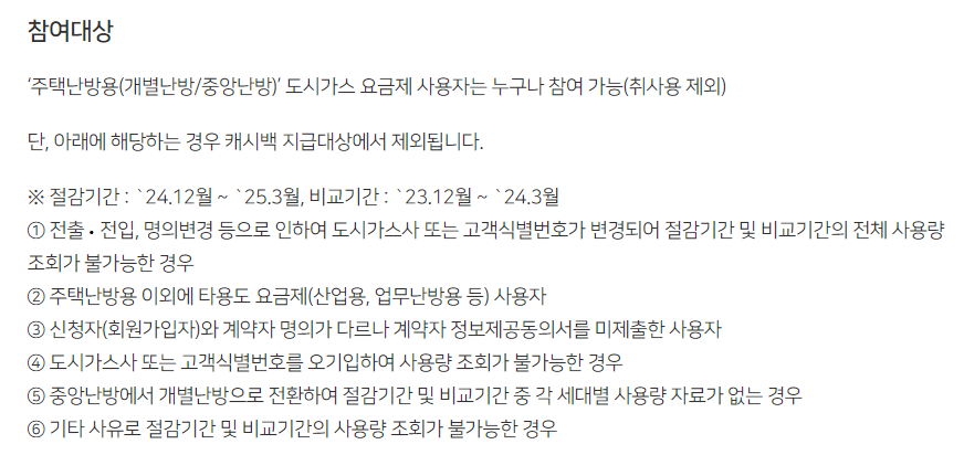 - 주택난방용 또는 중앙난방용 도시가스 요금제를 사용하는 모든 가정이 대상입니다.