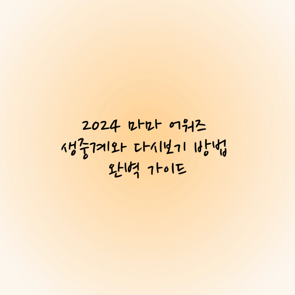2024 마마 어워즈(Mnet Asian Music Awards)는 전 세계 음악 팬들에게 K-POP의 화려한 무대를 선보이는 가장 큰 연말 행사 중 하나입니다. 매년 아티스트와 팬들에게 특별한 순간을 선사하며 주목받고 있는 이 시상식은 생중계뿐만 아니라 다시보기 서비스도 다양한 방법으로 제공되어 놓친 순간까지도 즐길 수 있습니다.