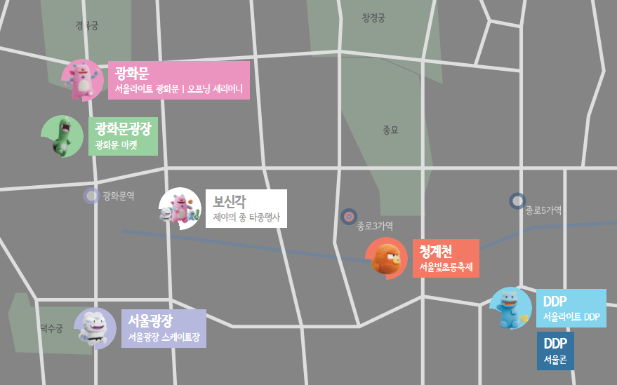 광화문, 청계천, DDP 등 서울 도심 6개 주요 장소에서 2024년 12월 13일(금)부터 2025년 1월 5일(일)까지 약 24일간 진행됩니다.