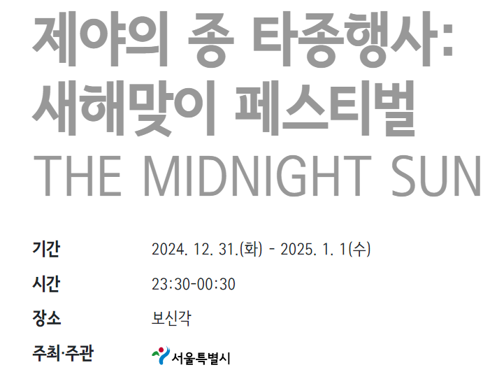 제야의 종 타종행사 2024.12.31.~2025.1.1. 23:30~00:30 보신각