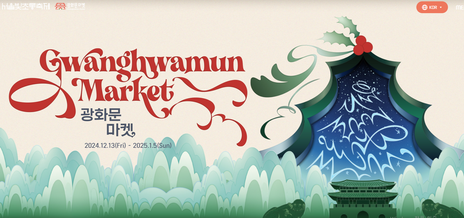 광화문 마켓 2024.12.13.~2025.1.5. 목 17:3021:30 금일 18:0022:00 광화문광장, 세종로공원