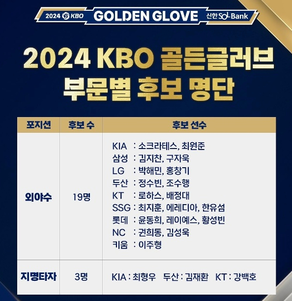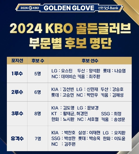 2024 신한은행 SOL 뱅크 KBO 골든글러브 후보 및 예상 수상자 분석