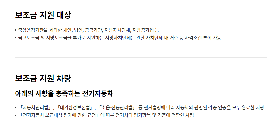 전기차 보조금은 다음과 같은 대상을 위해 지원됩니다: