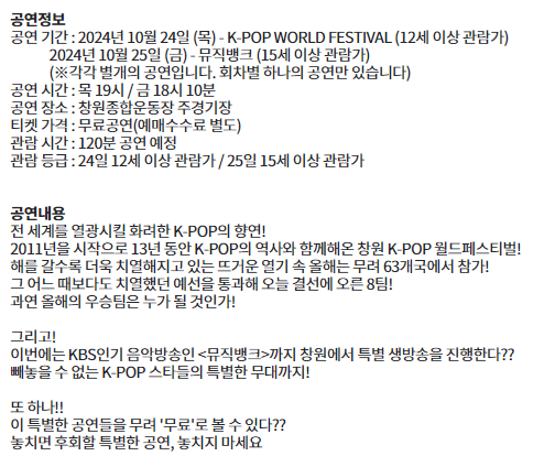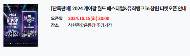 - 10월 24일 K-POP 월드페스티벌: 12세 이상 관람가